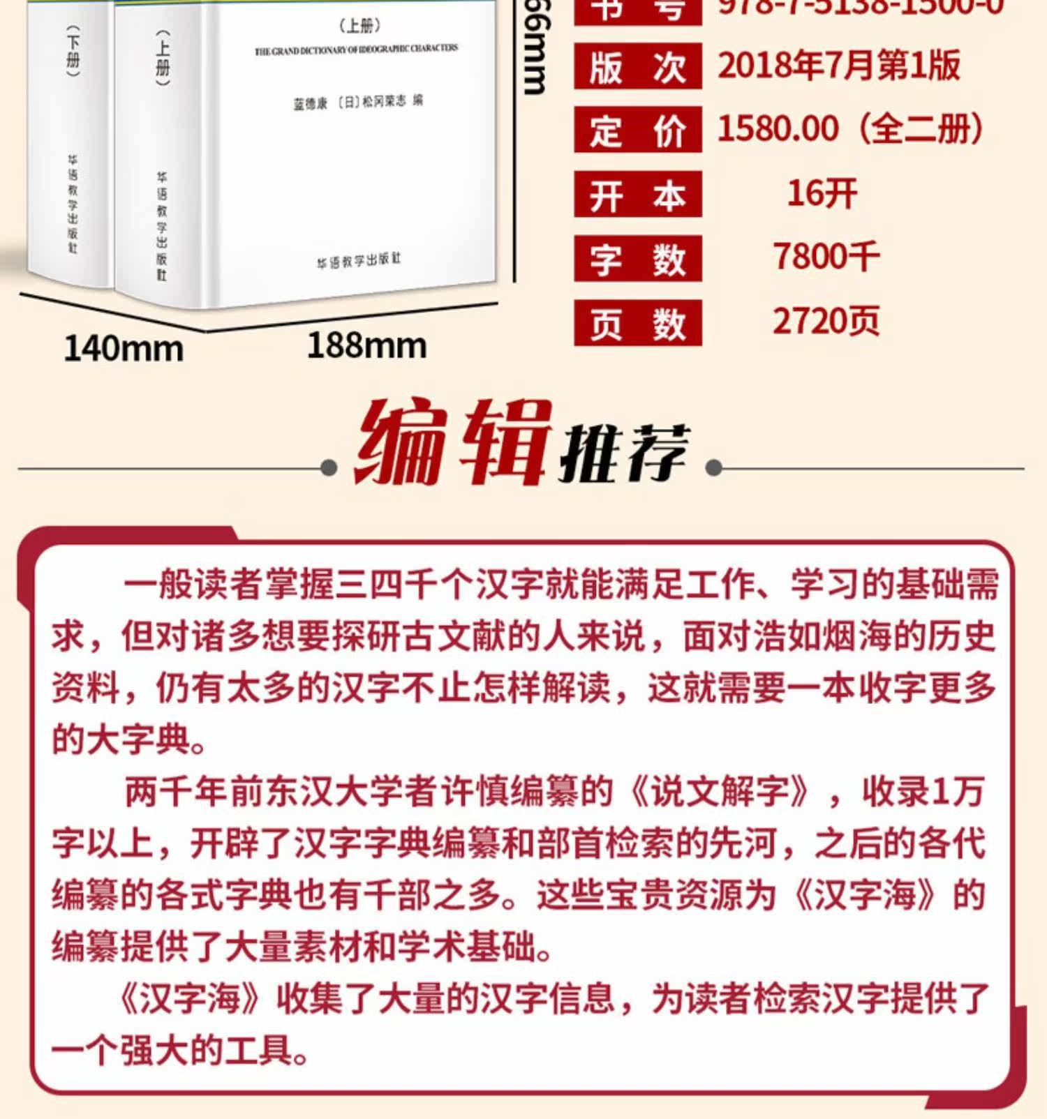 全2册汉字海初高中大学成人新华字典古汉语常用字字典专业工具书中华字海实用汉语大字典新华汉语汉字大全繁体字字典辞海 虎窝淘